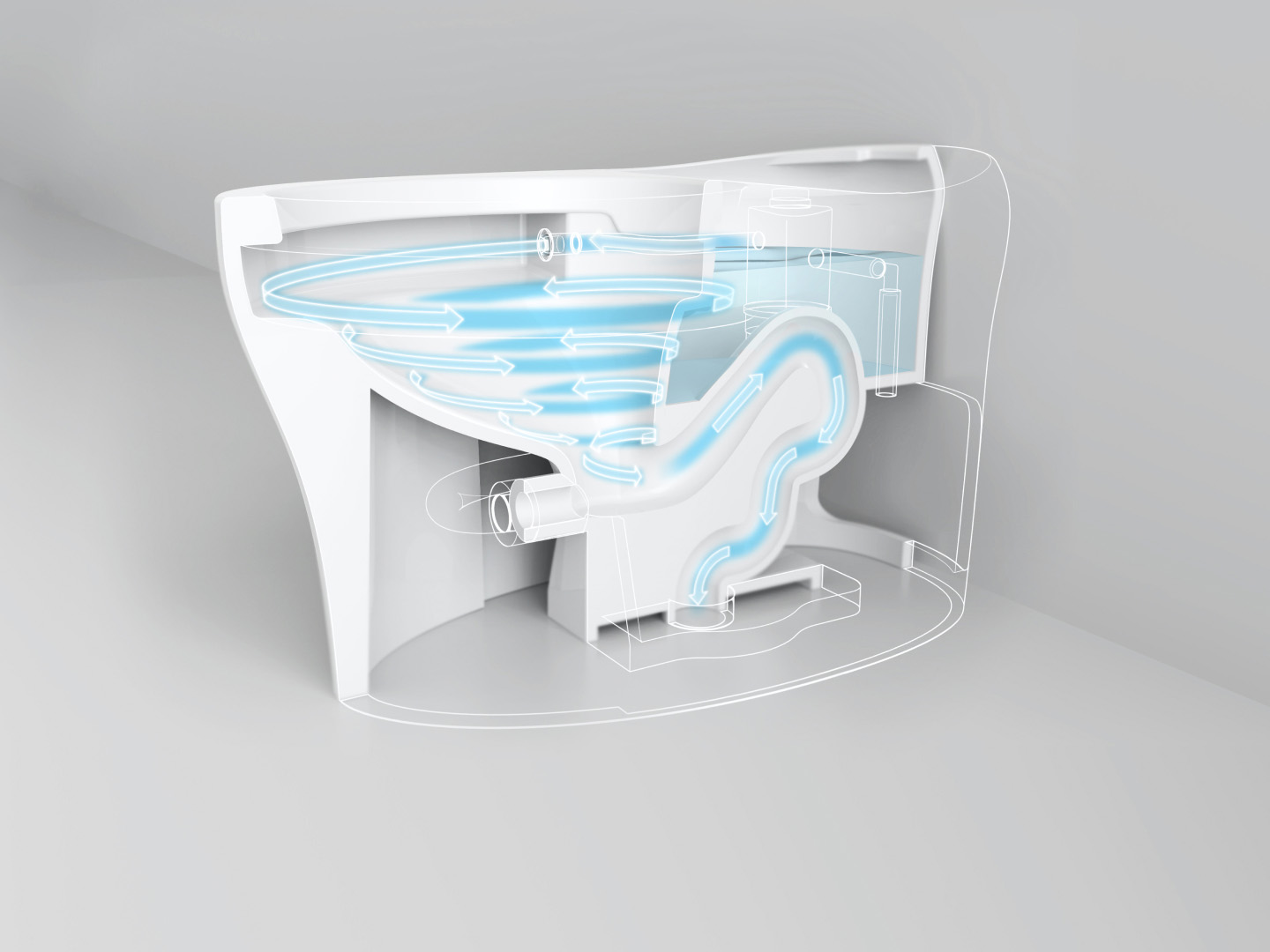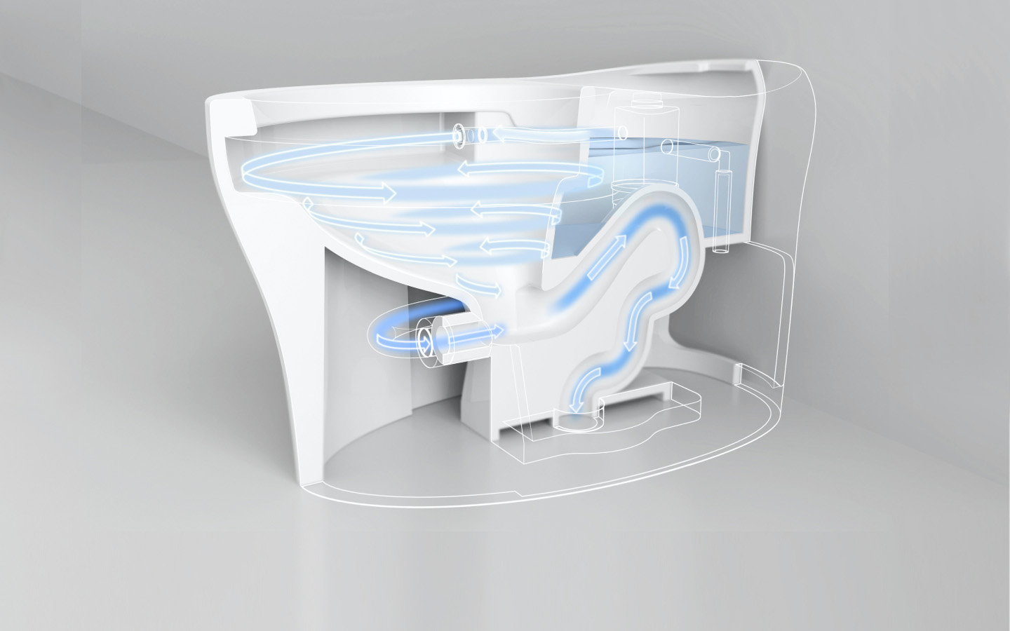 generating a powerful flush that also cleans the bowl completely without any blind spots.