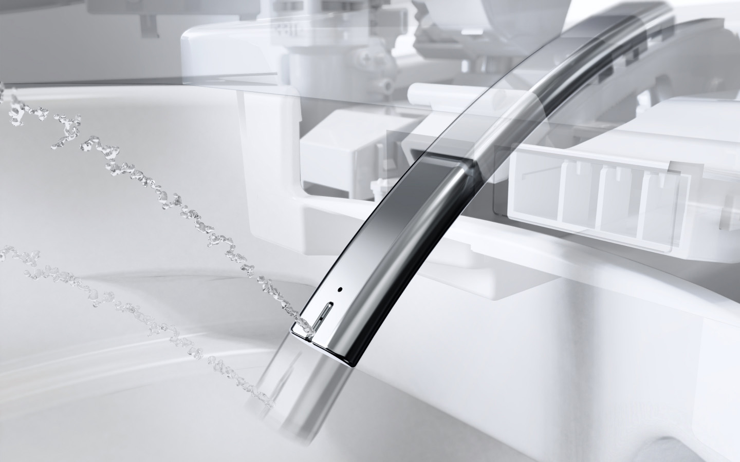 The powerful water flow hidden behind the pressure plate is more efficient at