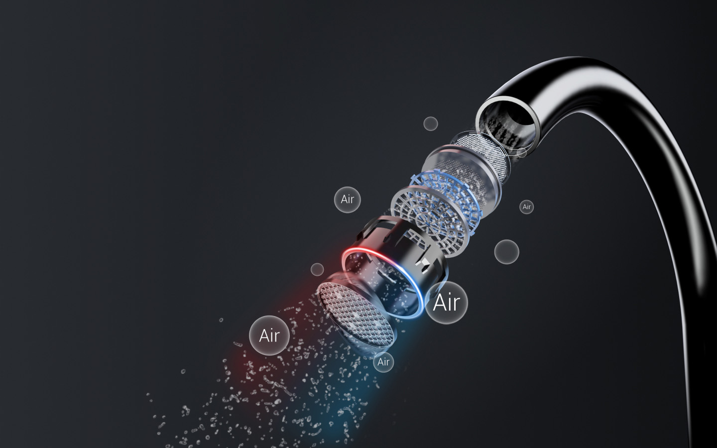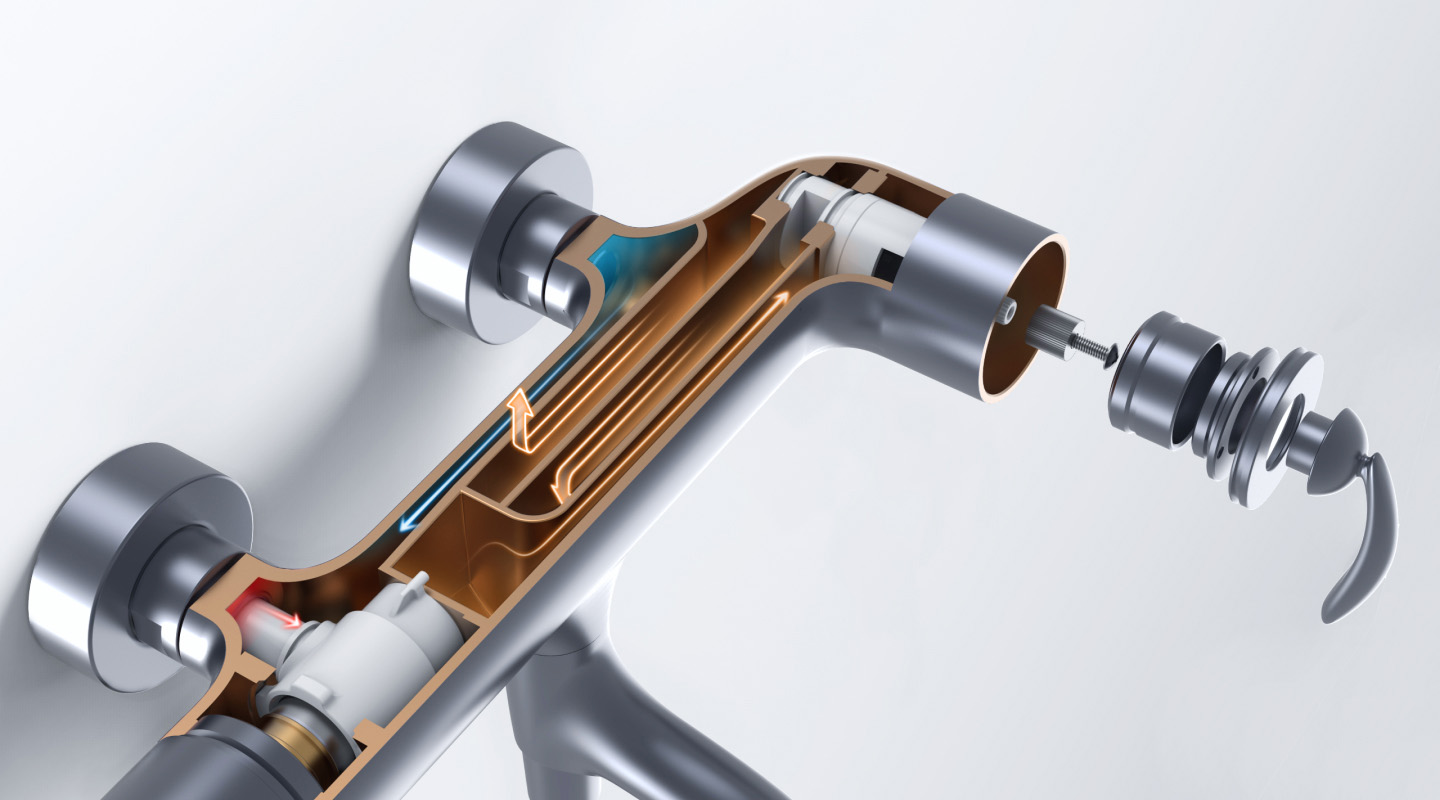 The amount of cold water and hot water is automatically balanced within a short period of time to keep