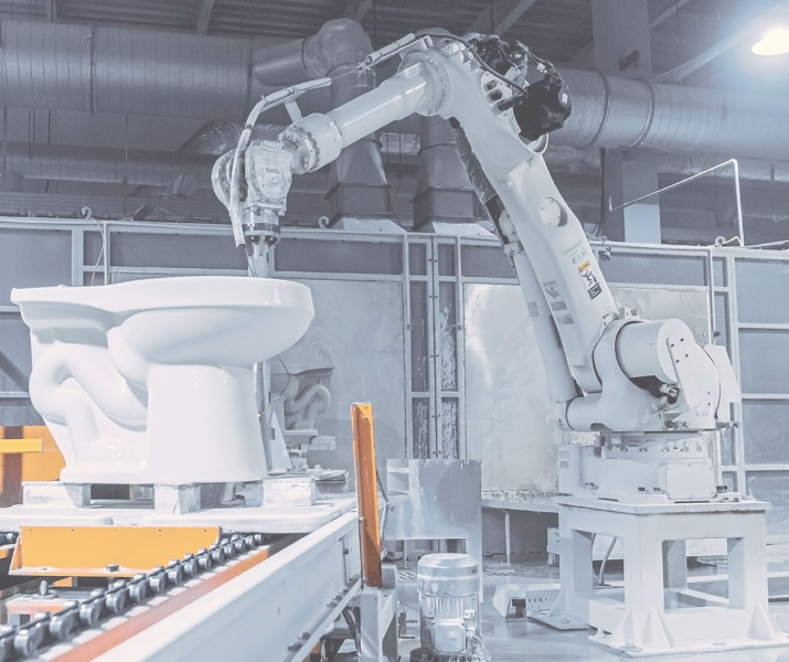 The mechanical arm automatically sprays the glaze to protect the health of our workforce, ensure a uniform glaze,